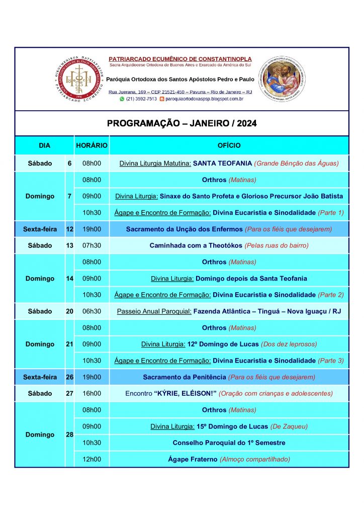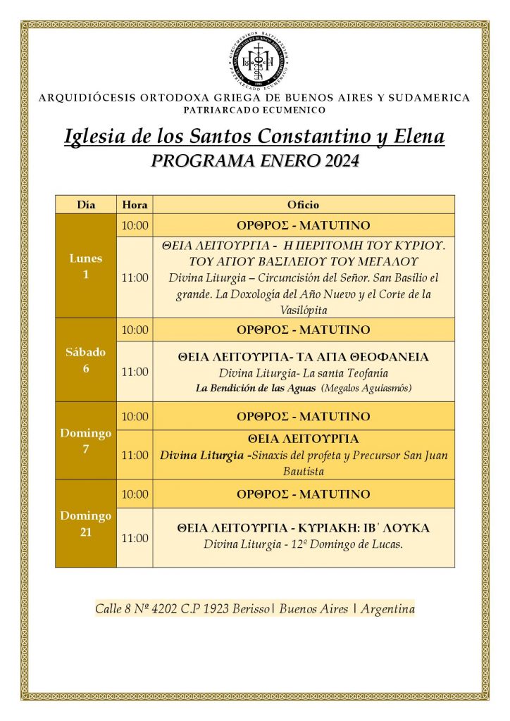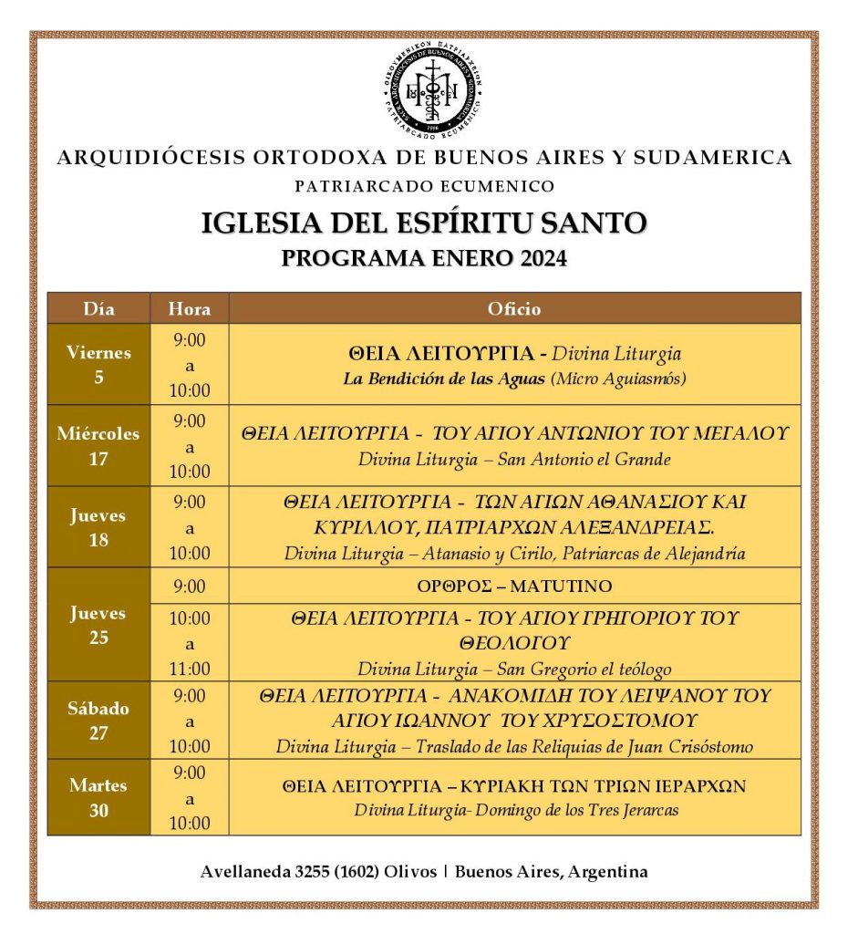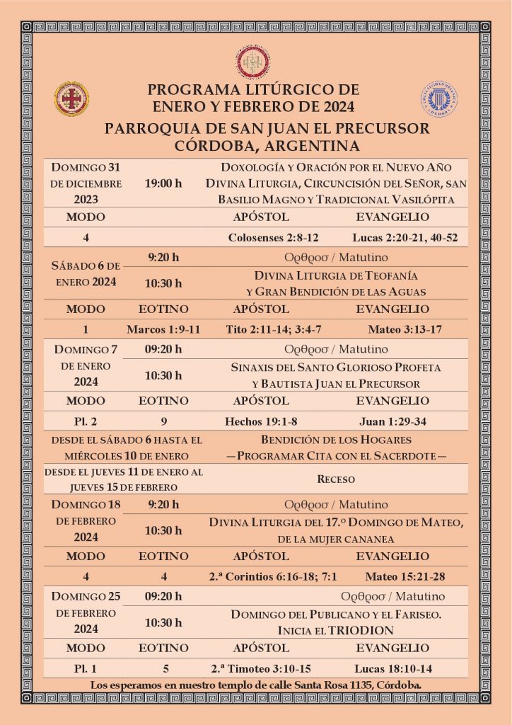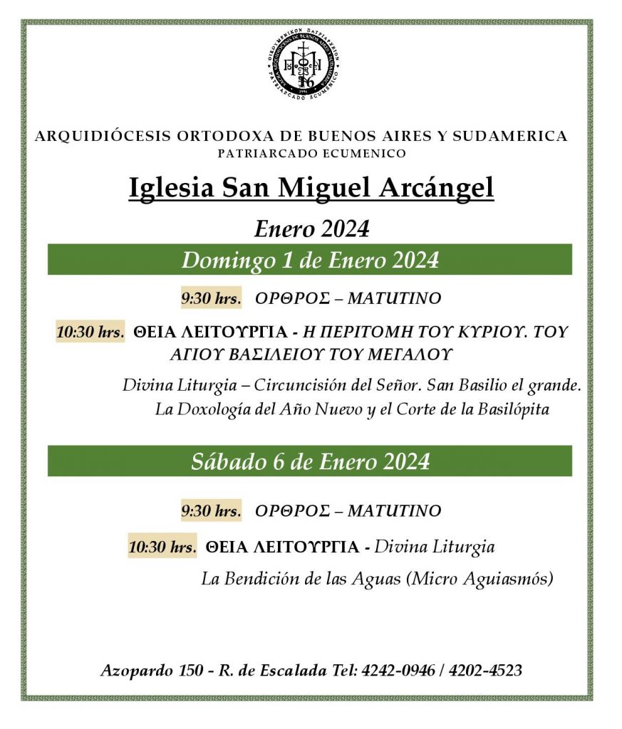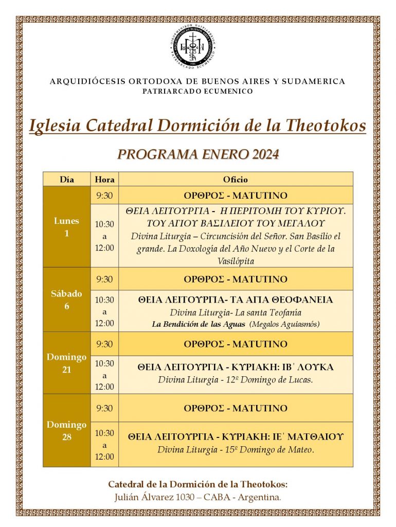 Programas Litúrgicos de Enero 2024 en diferentes parroquias de nuestra Arquidiócesis.